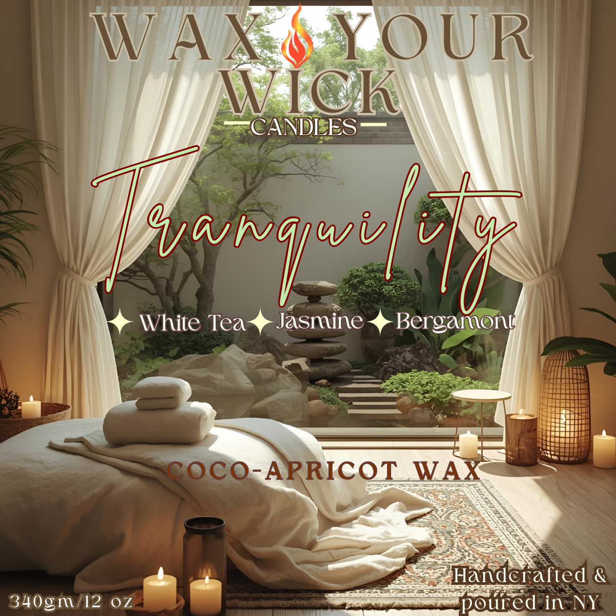 Tranquility is a 12 oz candle that blends the gentle freshness of white tea with hints of jasmine and bergamot that will feel like you're stepping into a warm, serene spa. Light, airy and relaxing, come and wrap yourself in pure, peaceful energy!